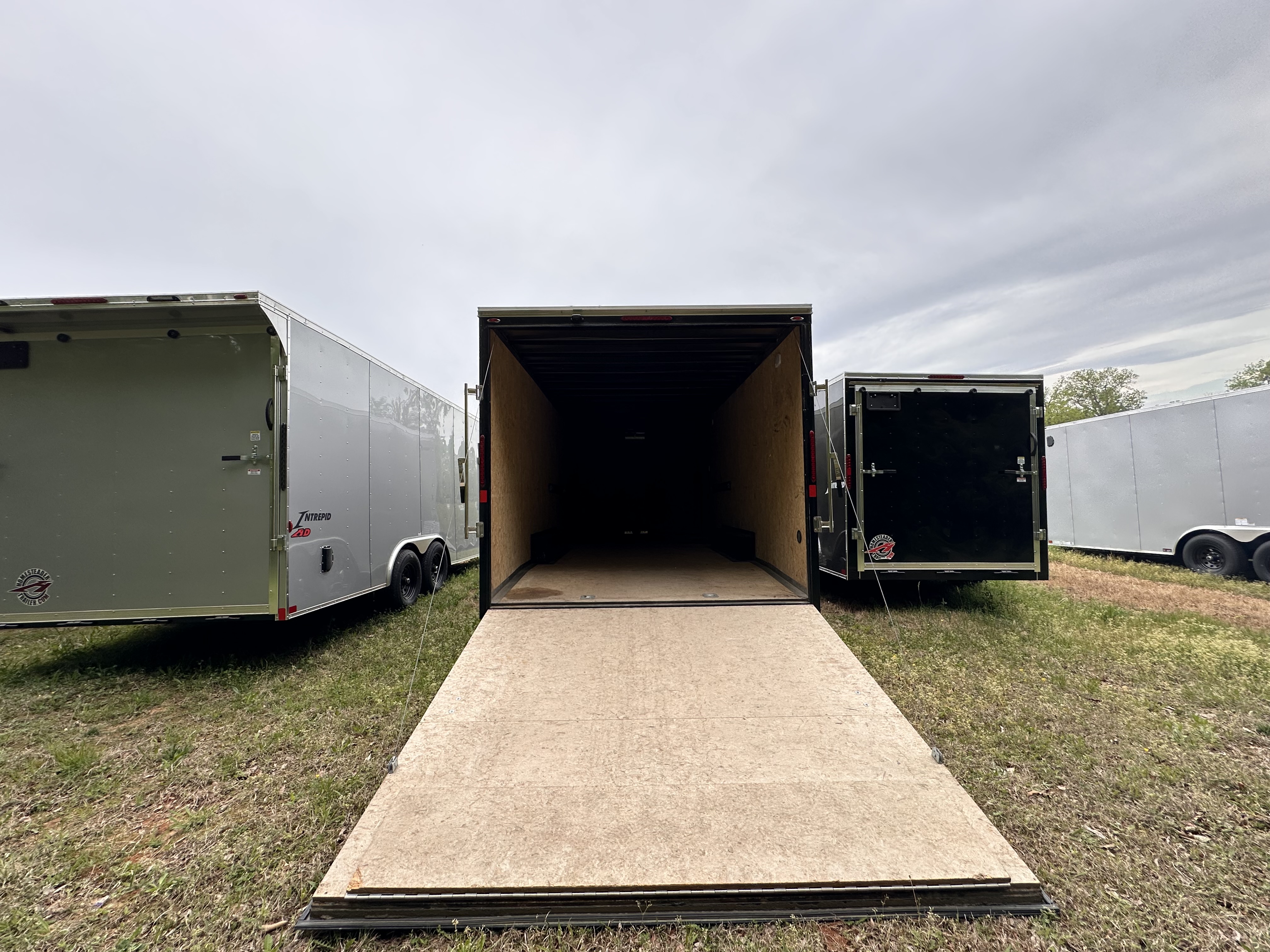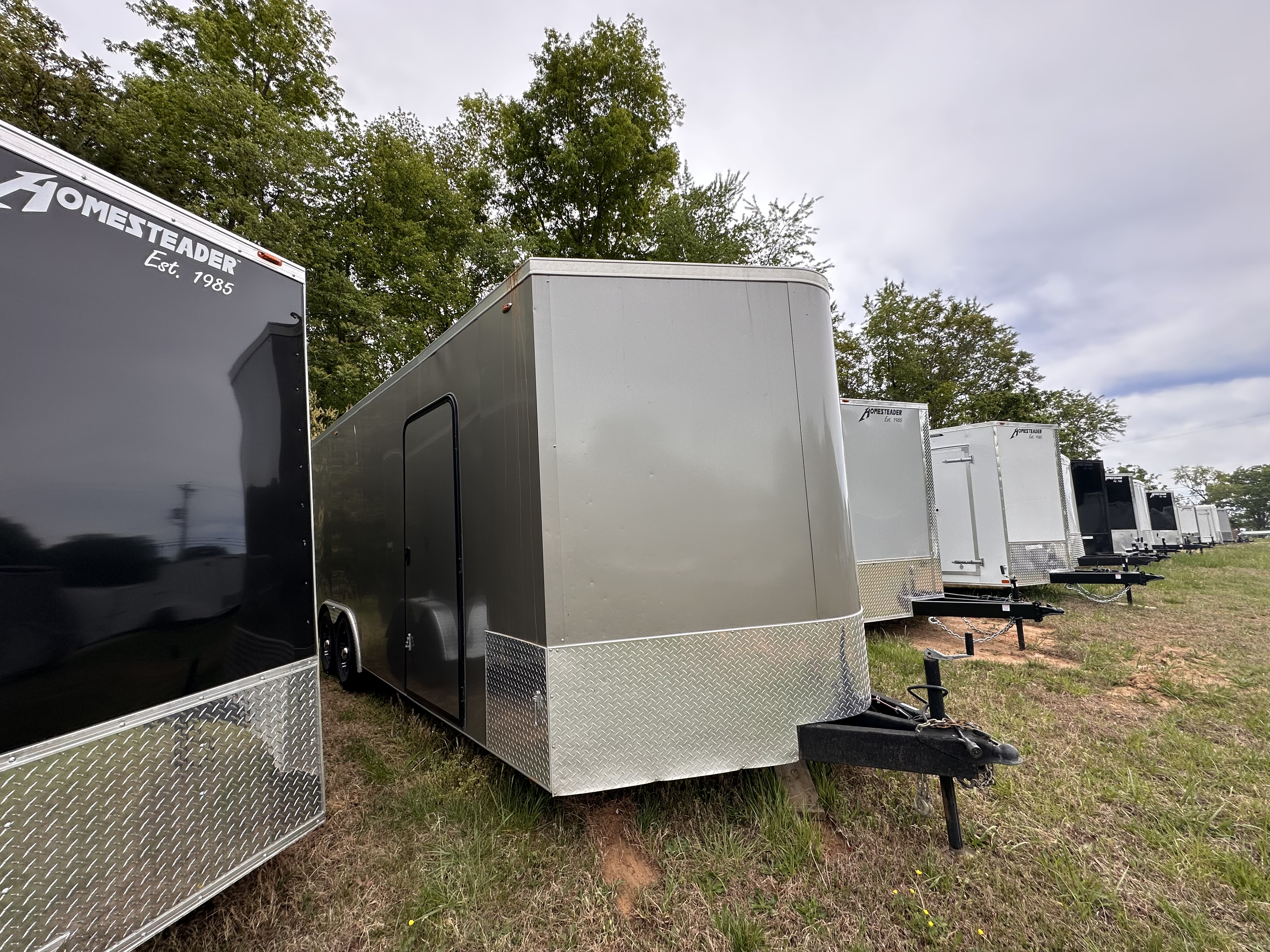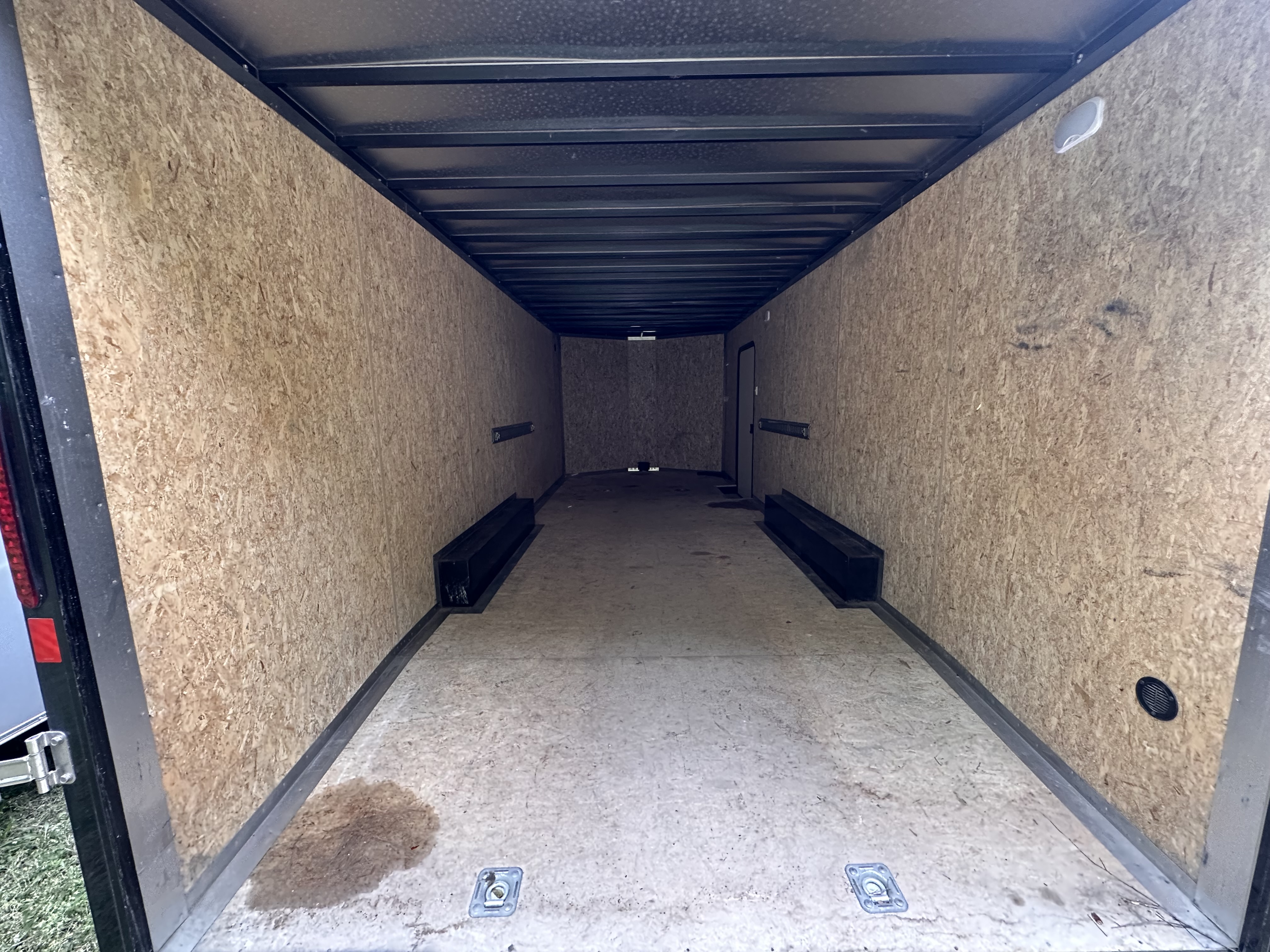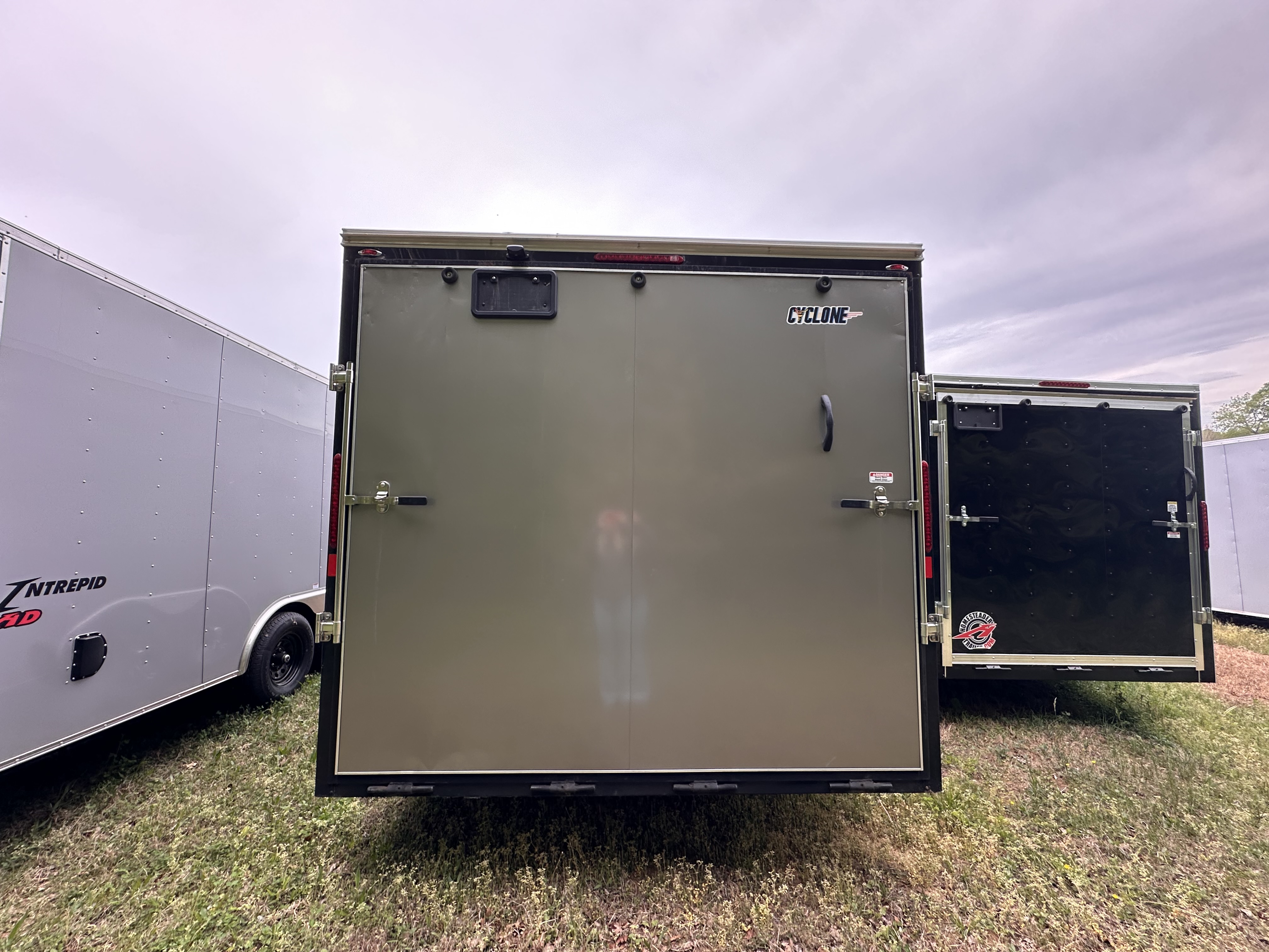 Used Enclosed Aluminum 8.5x24STVTA70 Cyclone 10K, 2-5.2K Torsion Brake Axles, 6" Extra Hgt., 36"x 74" RV Door w/Flush Lock, .030 Aluminum Sides, Spring Assist Ramp Door w/16" Extension Flap, Seamless Roof, Side Vents, 2-5/16" Coupler, 3/4" Engineered Wood Floor, 24" Stone Guard, ST225/75R15 8-Ply Tires on Aluminum Rims, 16" o/c Floor & Walls.