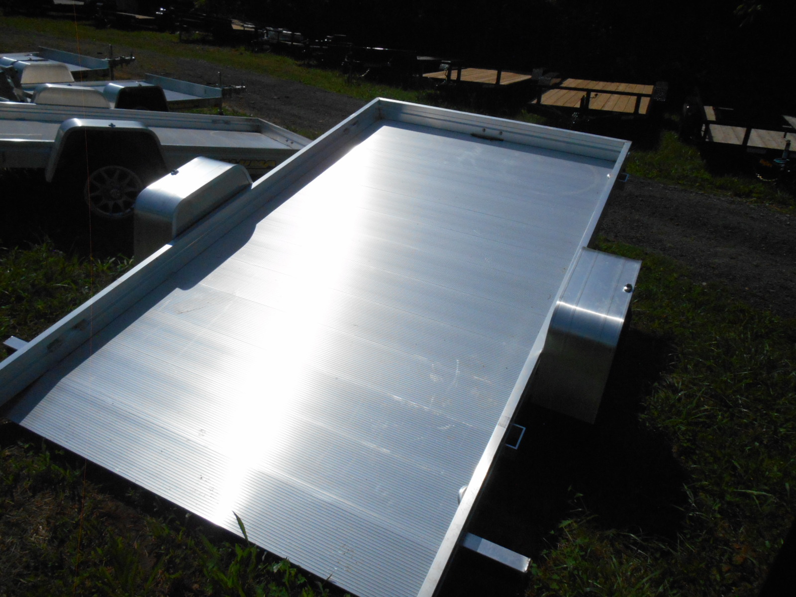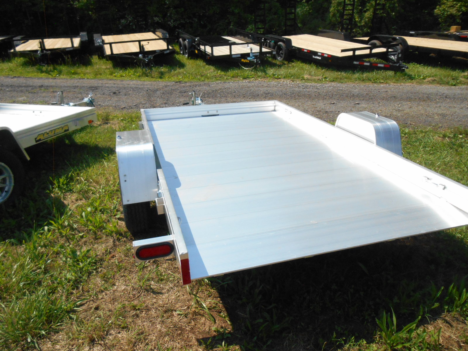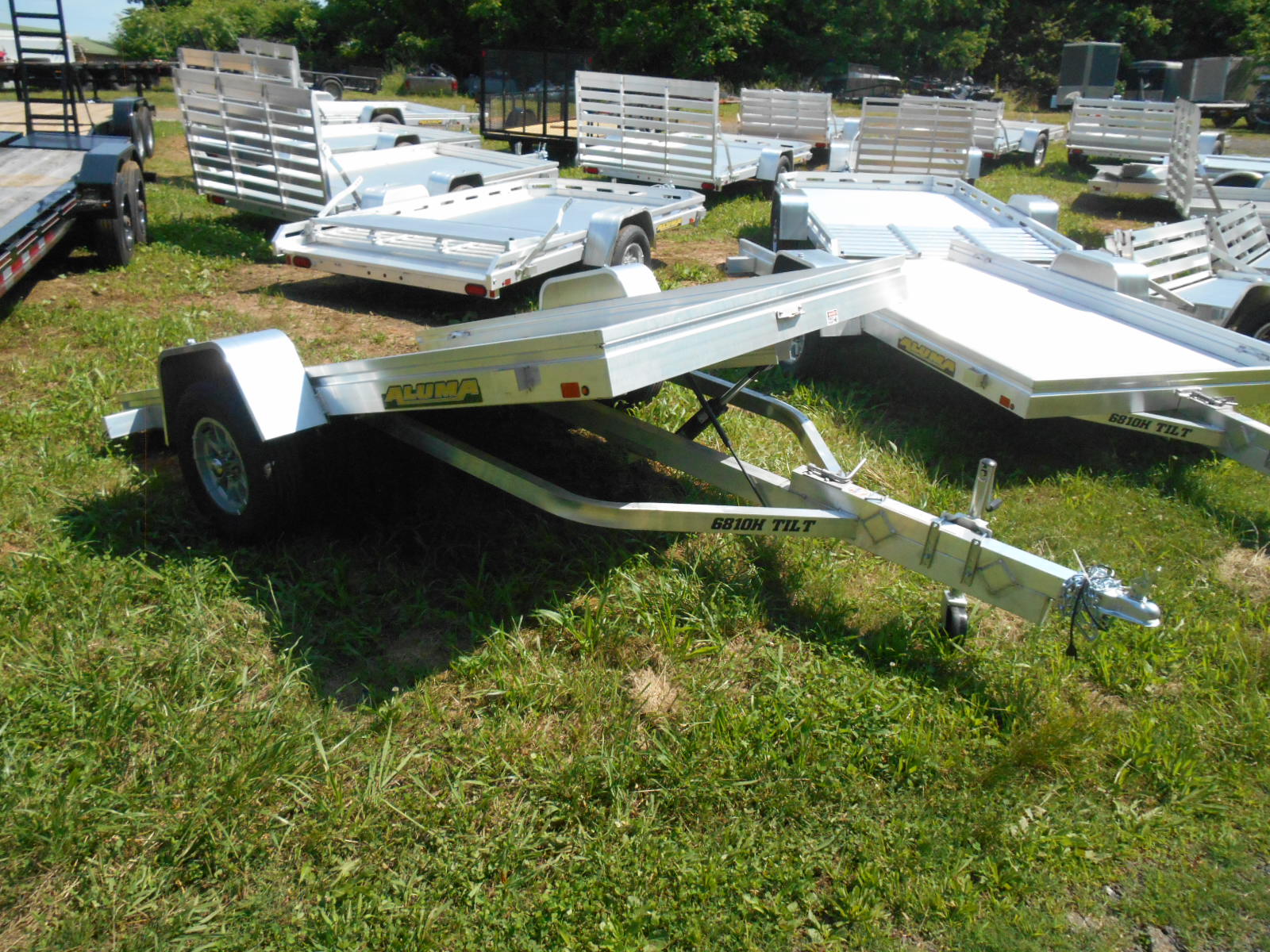 Aluminum Utility 6810H Tilt 3K, 3500lb.Torsion EZ Lube Idler Axle, Extruded Aluminum Floor, A-Frame w/2 Coupler, 7 Heavy Duty Frame Rail, 4 - Stake Pockets & Tie Down Loops, Swivel Tongue Jack, LED Lighting, Tilt Bed, ST205/75R14 6-Ply Tires on Aluminum Wheels 545, Aluminum Fenders.
