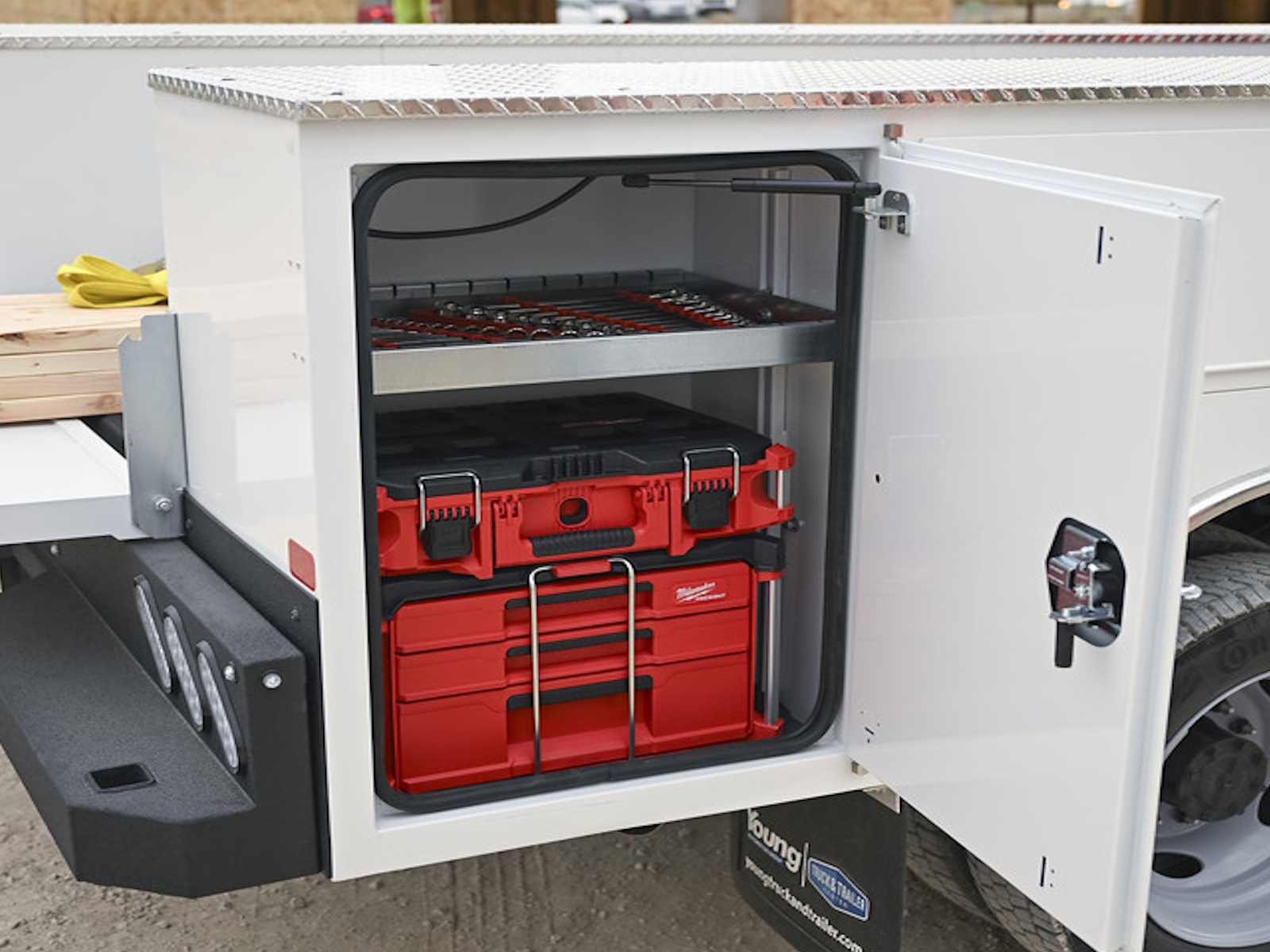 - Crafted from bullet-lined (A60) 16-gauge reinforced steel subframe with (G60) galvanneal welded side packs, our service bodies are built for maximum strength and corrosion resistance. This industry-leading construction delivers the durability and performance that hardworking professionals across America count on every day.
