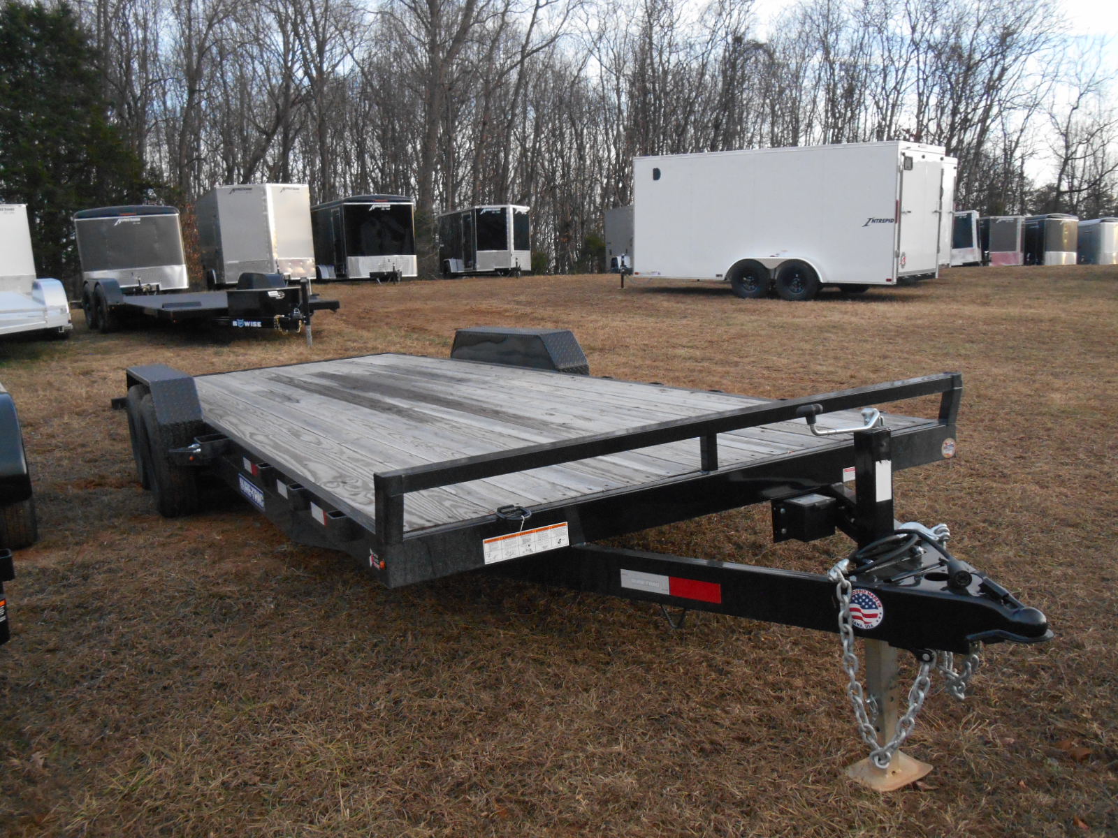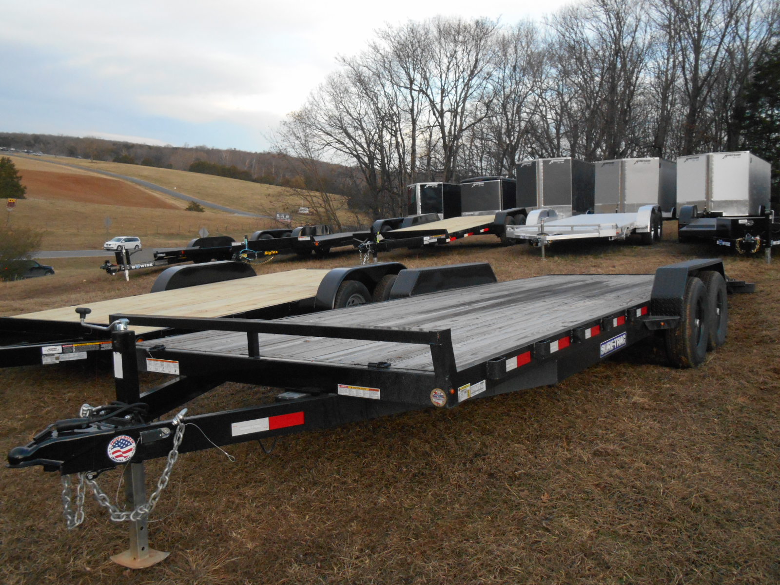 Car Hauler ST8222CHW-B-100 10K, Board Retainer Floor w/2' TP Dove Tail, 5' Steel Slide-in Ramps, DB Treadplate Fenders, 2-5.2K Brake Axles, LED Lights, 4-1/2 Tie Downs, ST225/75R15 8-Ply Tires, 7K Drop Leg Jack, 2-5/16 A-Frame Coupler