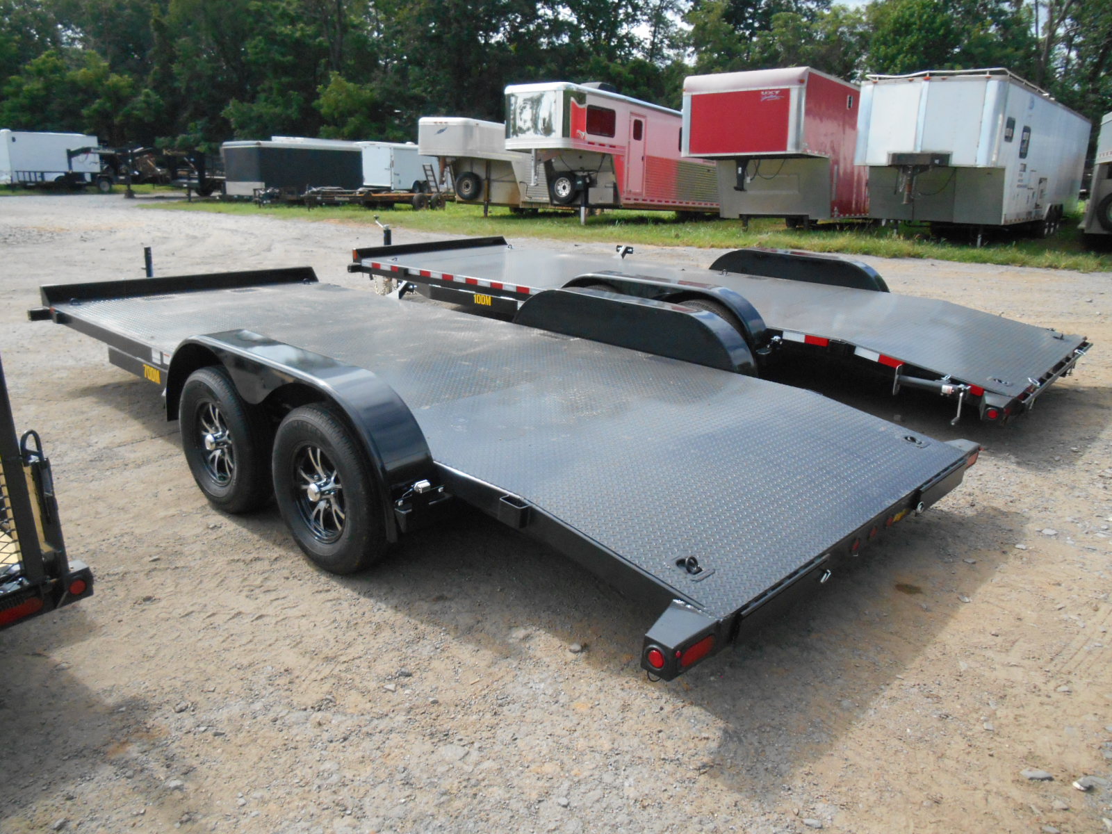 Car Hauler 70DM-18RD 6-10X18 7K, 2-3500lb. Brake Axles, Dove Tail, Diamond Plate Floor, 5' Diamond Plate Slide-in Ramps, 4-D-Rings, Removeable Fenders, ST205/75R15 6-Ply Tires on alm Wheels, Flip Jack, 2-5/16Adj. Coupler, Stake Pockets.