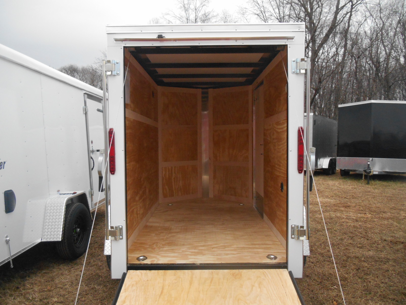 Enclosed 508IS 3K V-Nose, 6' Interior Hgt., 3.5K Drop Idler Axle, 32" Side Door, 24" Stone Guard, 3/4" Plywood Floor, 3/8" Plywood Walls, 4-D-Rings in Floor, Rear Spring Assist Ramp Door, ST205/75R15 6-Ply Tires.