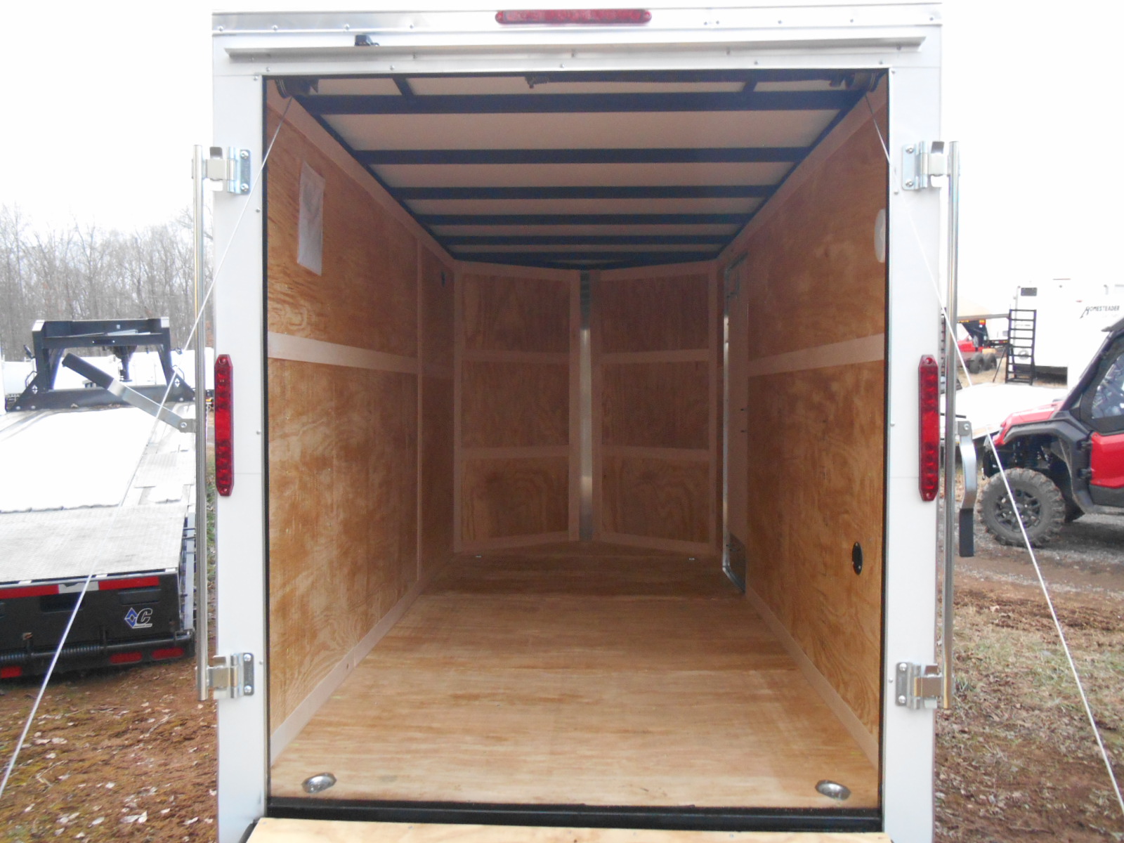 Enclosed 612IS 3K, 3.5K EZ-Lube Axle 4 Idler Axle, 6'-6" Interior Height, Vee-Nose, 16O/C Walls, 3/4" Floor, 3/8" Side Walls, 32" Side Door, Rear Spring Assist Ramp Door w/16 Extension Flap, Interior Light, LED Lighting, ST205/75R15 6-Ply Tires, 24 Stone Guard, 2K A-Frame Jack.