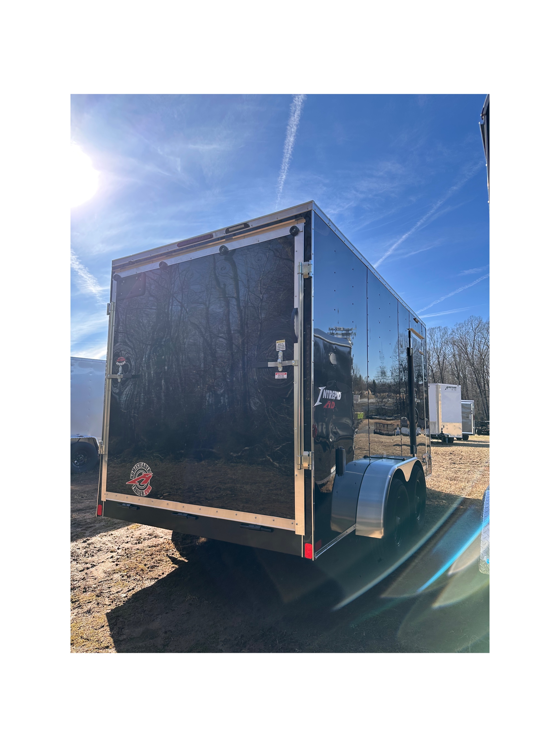 Enclosed 714IH 10K, 2 - 5.2K Brake Axles, .080 PolyCor Skins, Rear Load Light, 3/8" Plywood Walls, 3/4" Plywood Floor, 16 o/c Cross Members, ST225/75R15 8-Ply Tires, 32" Side Door, 24" Stone Guard, Spring Assist Ramp Door w/16 Wood Flap, Flow Thru Vents, 7' Interior Height.