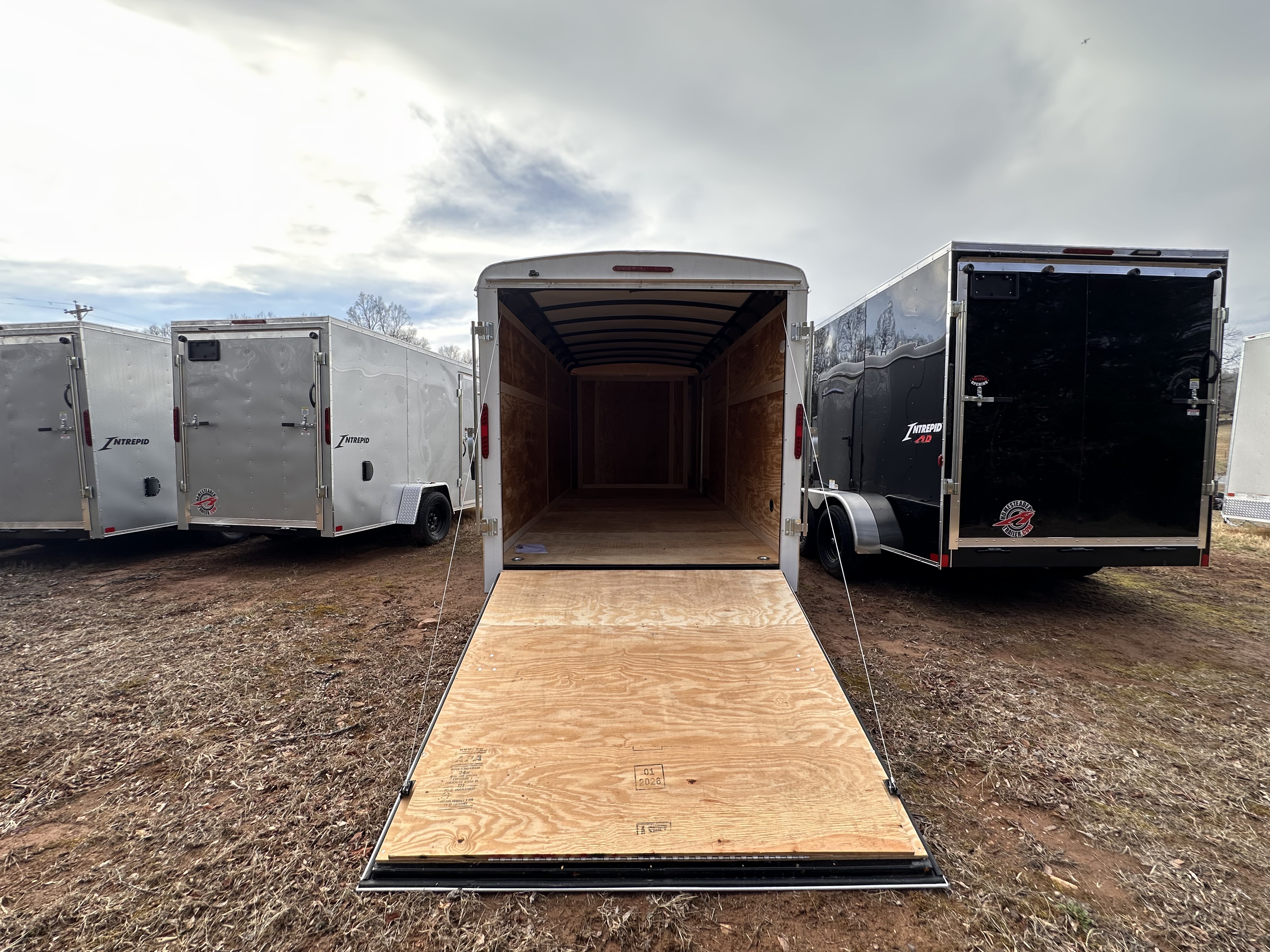 Enclosed 716HT 7K, 2-3.5K Torsion Brake Axles, 32" Side Door, 24" Stone Guard, 4-1K D-Rings, Rear Spring Assist Ramp Door, 12V Dome Lights, Flow Thru, LED Lighting, 16 o/c Floor & Walls, 6'-8" interior Height, ST205/75R15 6-Ply Radials, Keyed Lockable Door Hasp.