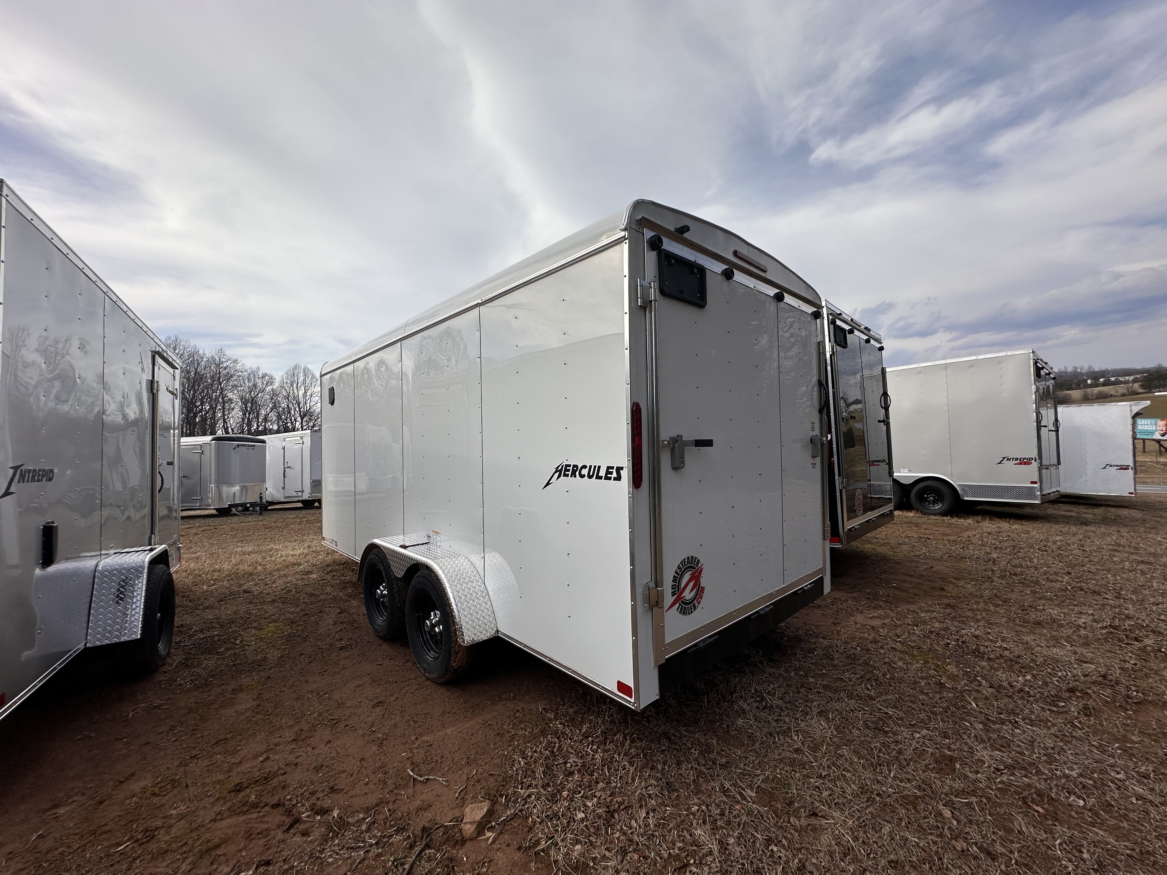 The Hercules is a durable, long lasting enclosed trailer. During the manufacturing process, we adhere to strict production measures to ensure the quality that you anticipate from Homesteader. We begin this process by utilizing only the finest components, including Torflex rubber torsion axles and E-Z lube hubs. All Hercules models boast a 2 x 6 tube steel constructed main frame, maximizing strength and durability. Additionally, 16″ O.C. floor cross members and wall posts are standard features within this series.