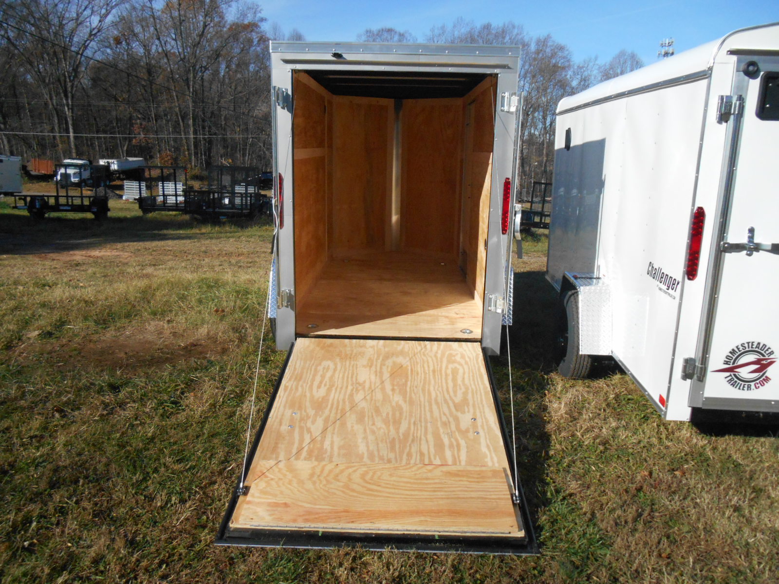 Enclosed 510IS 3K V-Nose, 3.5K EZ-Lube Idler Axle, 6' Interior Height, 32" Side Door, Rear Spring Assist Ramp Door w/16 Extension Flap, Flow thru Vents, 12V Dome Light, 24" ATP Stone Guard, ST205/75R15 6-Ply Tires, 2 Coupler, 2K A-Frame Jack.
