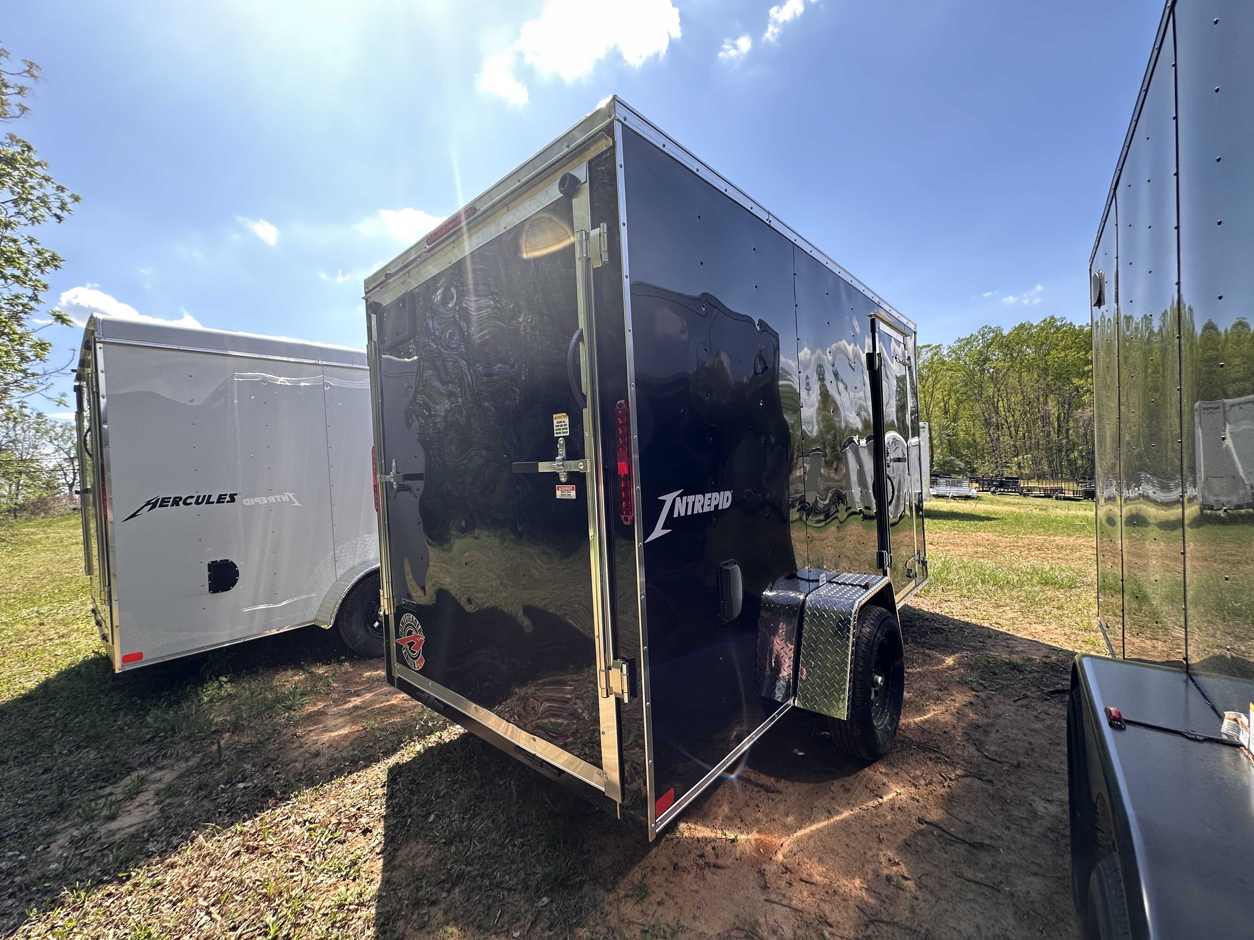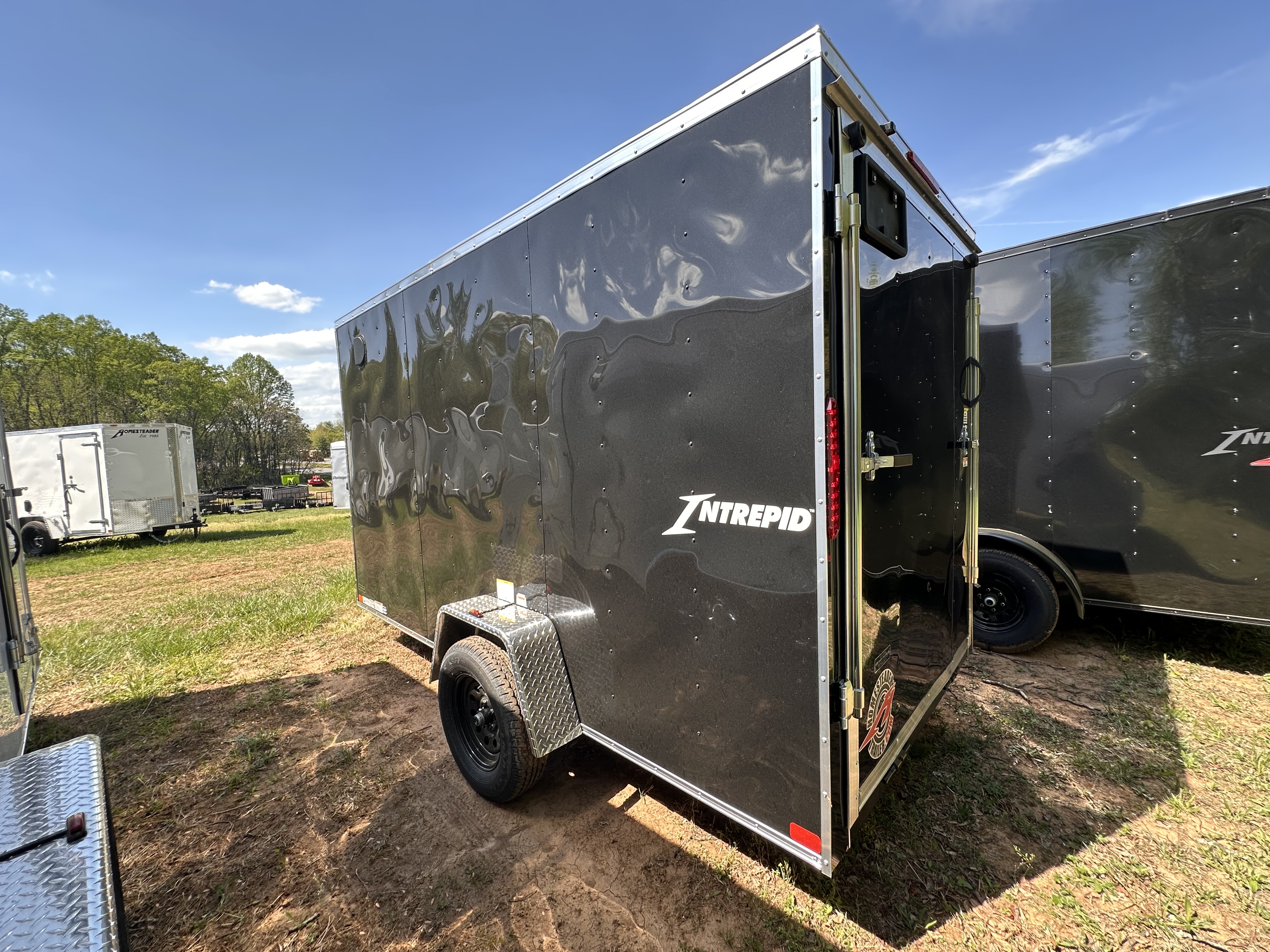 Enclosed 612IS 3K, 3.5K EZ-Lube Axle 4" Idler Axle, 6'-5" Interior Height, Vee-Nose, 16"O/C Walls, 3/4 Floor, 3/8 Side Walls, 32" Side Door, Rear Spring Assist Ramp Door w/16" Extension Flap, Interior Light, LED Lighting, ST205/75R15 6-Ply Tires, 24" Stone Guard, 2K A-Frame Jack.